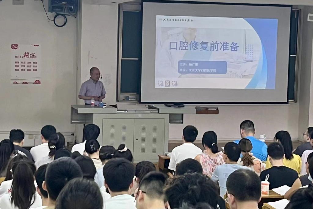 (通讯员 林培杰) 北京大学口腔医学院杨广聚教授应中华口腔医学会邀请来beat365beat365中文唯一官网进行教学帮扶活动,6月14号上午,为2021级口腔医学本科班学生讲授了一堂生动的理论课,主要内容是修复前口腔的一般处理。