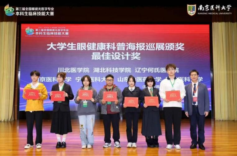 在赛事同期举办的大学生眼健康科普海报设计比赛中,由学院党委副书记程鹏带队、2024级张子乐同学展示的科普海报,凭借其独特的创意与专业的科普内涵,荣获“最佳设计奖”,同时beat365大学生近视防控宣讲团的工作成果也获得了与会专家的高度认可。