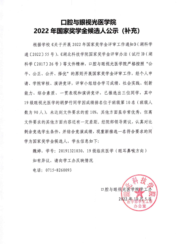 beat365中文唯一官网2022年国家奖学金候选人公示(补充)
