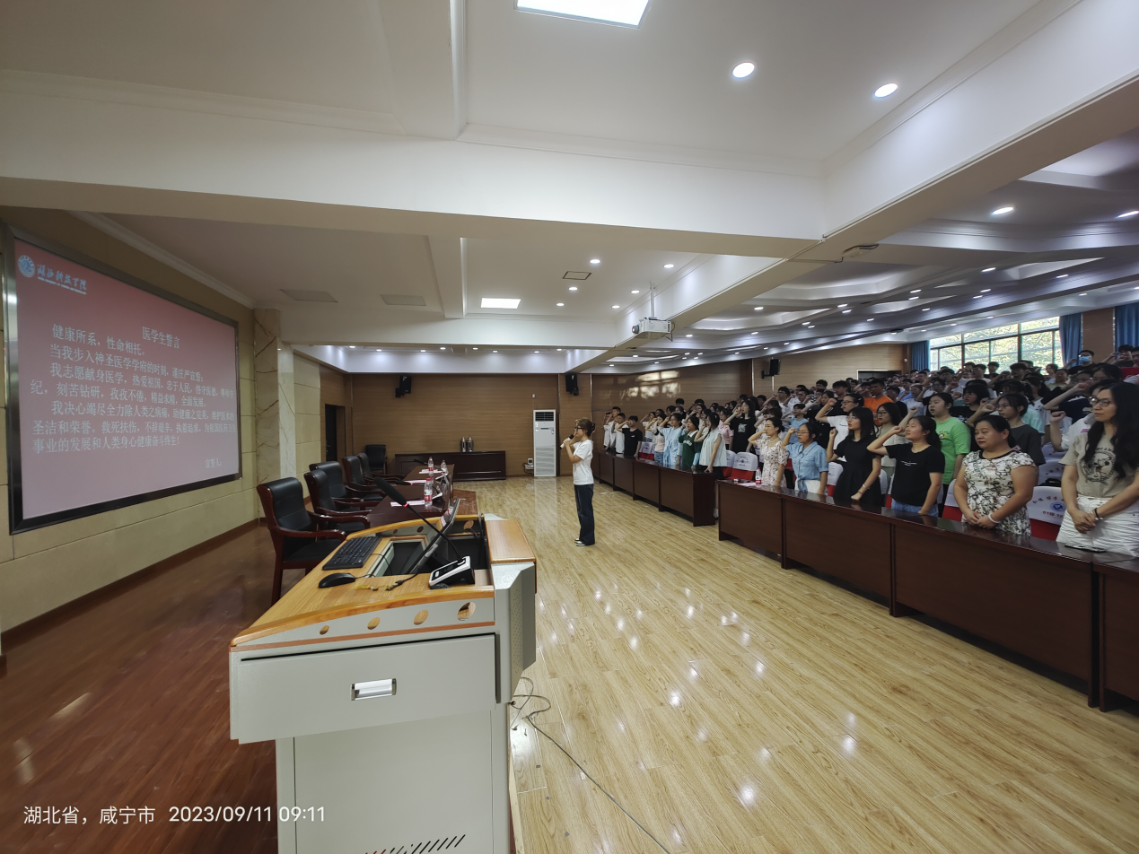 开学典礼上,伴随着李雨婕同学的领誓,“健康所系,性命相托”“我决心竭尽全力除人类之病痛,助健康之完美,维护医术的圣洁和荣誉”铿锵有力的誓词声环绕在教室内。