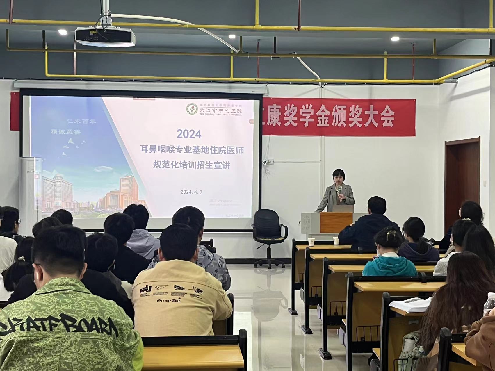 郭蓓则从科室的人员组成、科室的业务规模、科室的发展态势等方面简要介绍了武汉中心医院耳鼻咽喉科的发展情况;贺海霞就2024年武汉市中心医院的住培招生公告进行解读,从管理模式、带教方法、学员待遇等方面进行了详细说明。