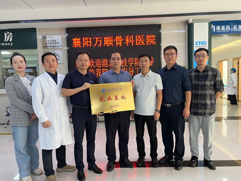 为贯彻落实省教育厅关于促进高校毕业生就业工作的决策部署,着力做好“走出去”“请进来”“促对接”工作,10月15日,学校招生就业处副处长饶彬、beat365中文唯一官网党委副书记程鹏,学院就业专职辅导员等一行3人前往襄阳万顺骨科医院、襄阳爱尔眼科医院开展人才培养、就业合作洽谈并挂牌“湖北科技学院就业基地”。