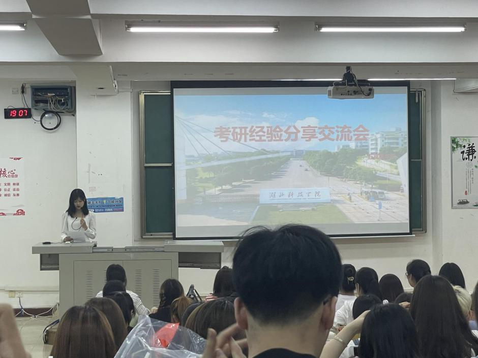 交流会共有9名同学上台进行分享,她们从不同专业、不同层次出发,大到如何正确择校,小到专业知识点的记忆技巧等等,结合自身特点与台下的学弟学妹们分享着自己的考研经验。