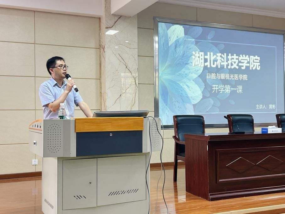 口腔医学专业教学团队负责人陈黄琴教授作为教师代表发言,希望同学们立足专业,脚踏实地、潜心钻研,以心怀大善的坚守、以潜心笃志的成长,为护佑人民生命健康而努力学习,为建设健康中国而不懈奋斗。