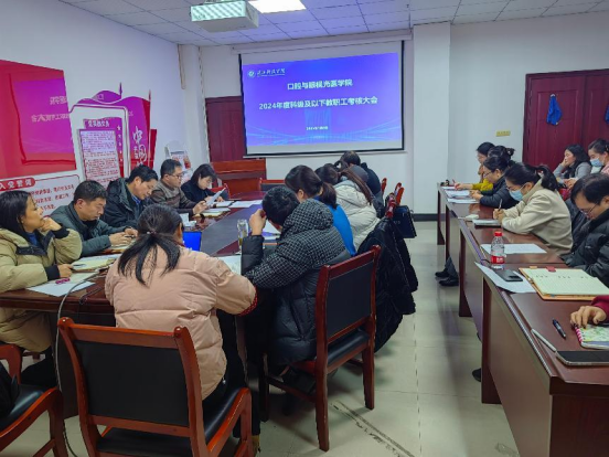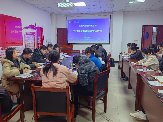 (本网讯:王艳) 1月8日,beat365中文唯一官网召开2024年度科级及以下教职工考核大会、师德师风考核暨寒假假期工作布置会。学院领导班子、全体教职工参加会议,会议由党委书记黄彬主持。