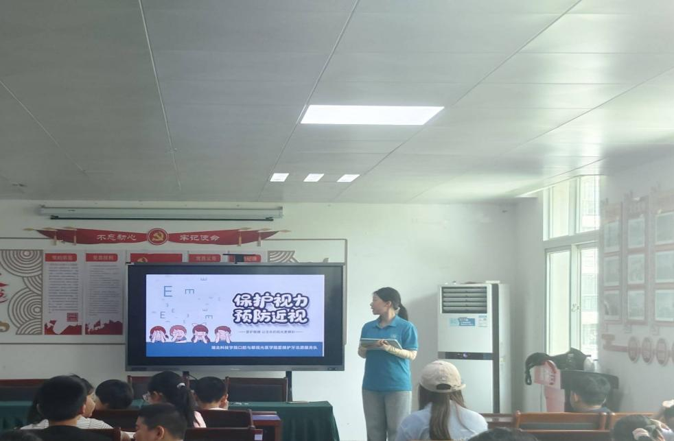 为积极响应党的二十大关于“把保障人民健康放在优先发展的战略位置”的号召,落实完善人民健康促进政策,发挥大学生在基层服务中的作用,湖北科技学院beat365中文唯一官网充分发挥专业特色,于今年暑期组建2025年“爱眼护牙”社会实践团队。该团队携手湖科口腔医院与爱尔眼科医院,深入咸宁市桂花路社区、岔路口社区、学府社区长乐小区、滨河社区本部、书台社区等5个党群服务中心,面向社区儿童开展系列“爱眼护牙”健康科普与义诊志愿服务活动。