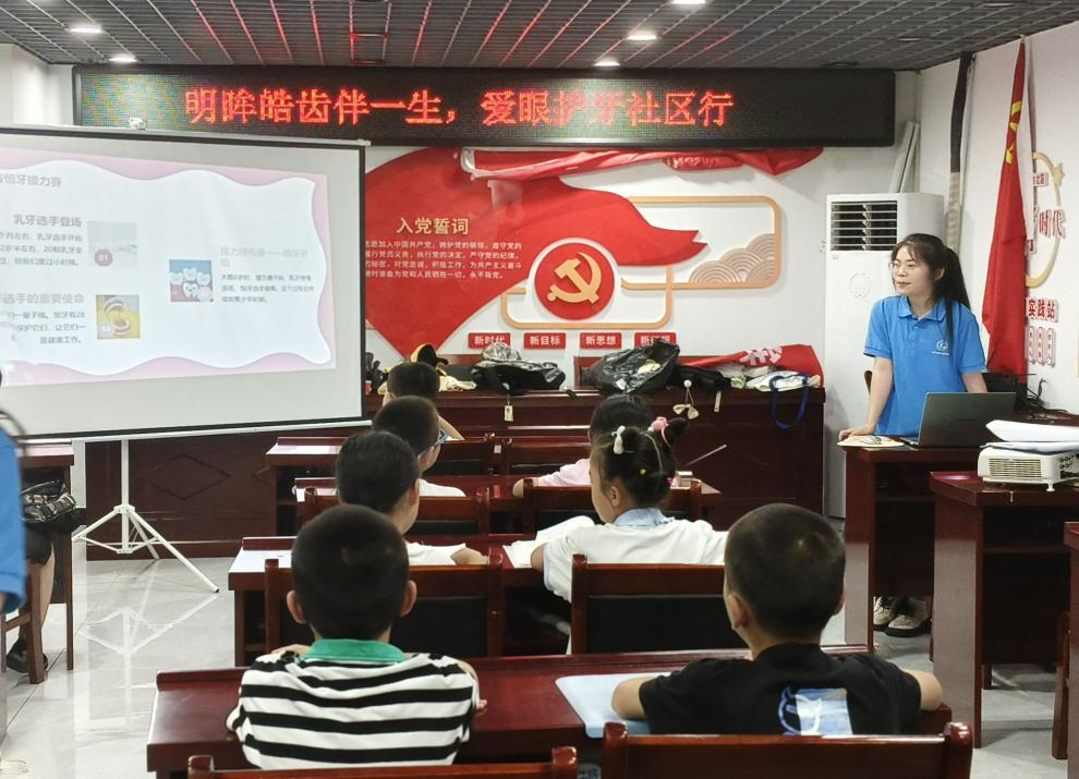七月酷暑难挡志愿热情。活动中,大学生志愿者们化身“健康讲师”,将专业的眼视光与口腔保健知识转化为生动有趣的互动课堂。