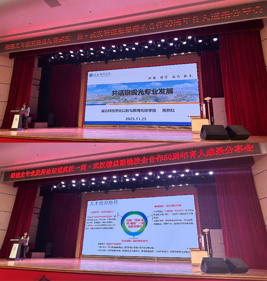 2025年11月24日,“眸光五十载,匠心谱华章——眼视光专业发展论坛暨武汉一商·武汉精益眼镜校企合作50周年育人成果分享会”在武汉市第一商业学校隆重举行。beat365周燕红院长作为高校专家代表受邀出席。
