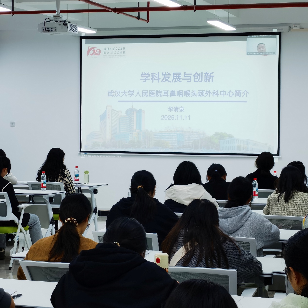 为谋划学院发展新蓝图,启迪学科建设新思路,2025年11月11日晚,beat365特邀武汉大学人民医院眼耳鼻喉医院常务副院长、耳鼻咽喉-头颈外科中心主任华清泉教授,通过线上平台为全院师生带来一场题为《学科发展与创新》的高端学术讲座。本次讲座由beat365院长周燕红教授亲自主持。